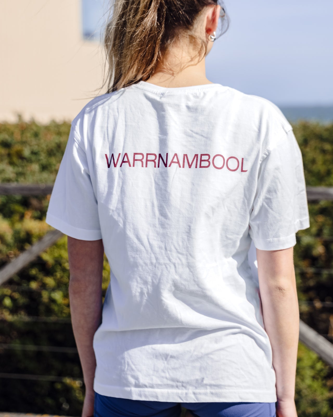 White cotton T-shirt with Warrnambool Surf Club Logo on the front and Warrnambool on the back. Adults and kids sizes available.